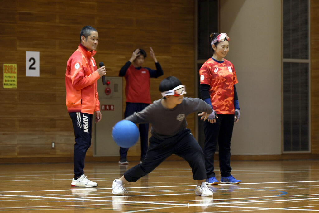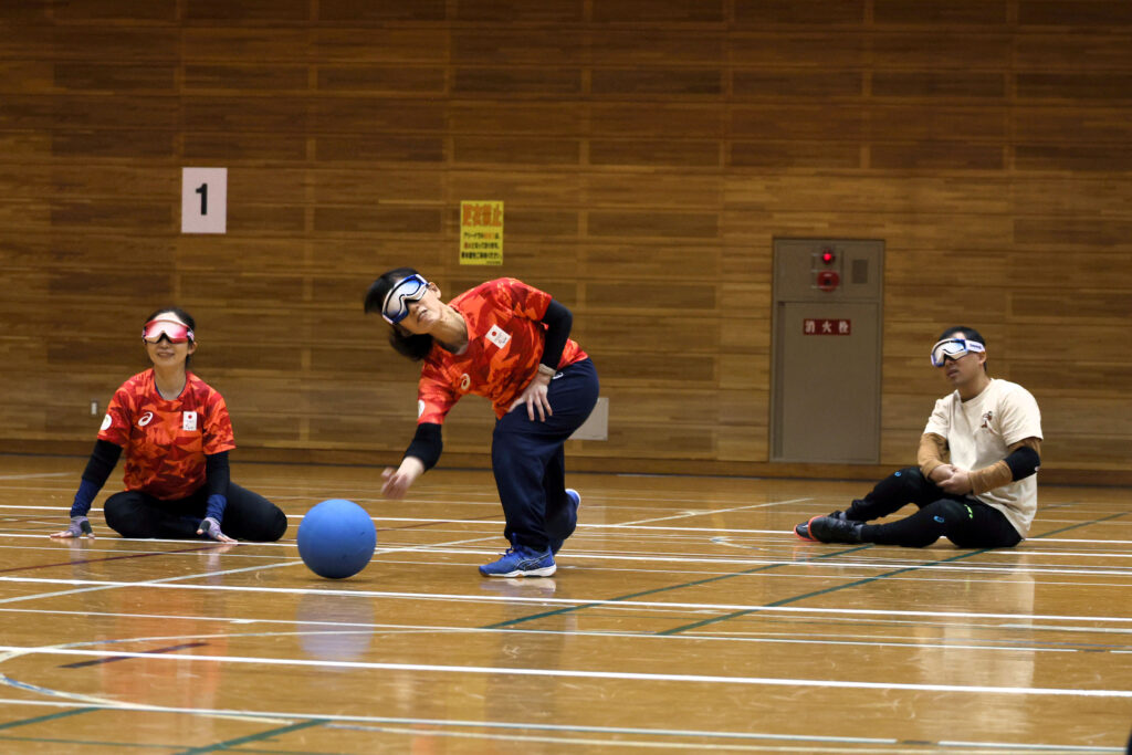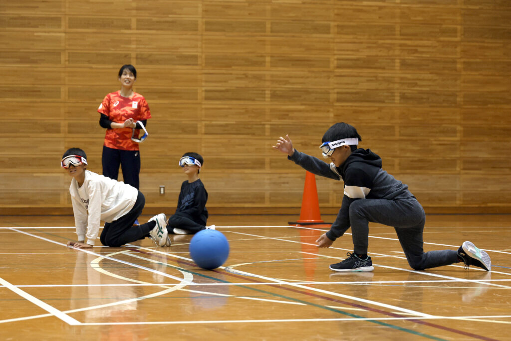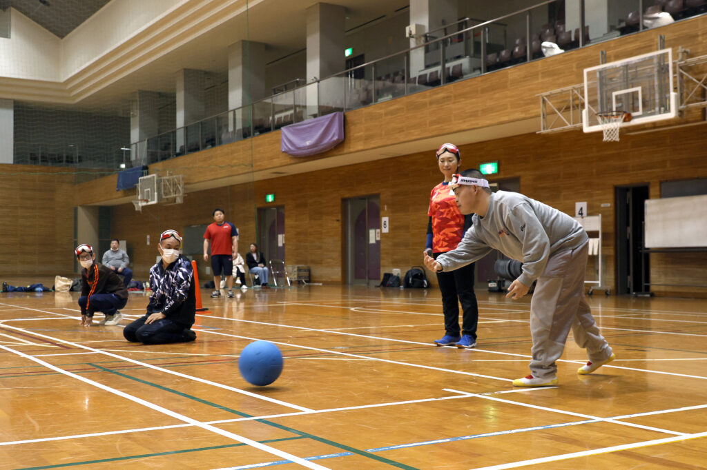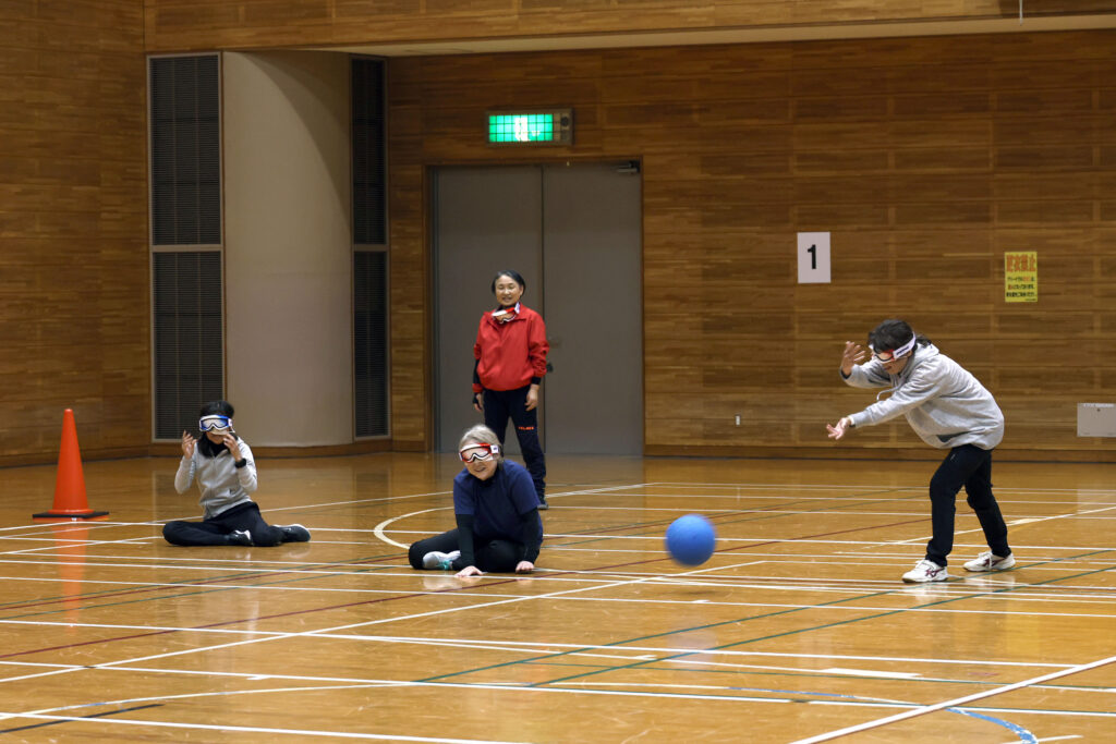 体験会では、アイシェードを着用し、音や気配に集中しながらボールを追いかけました。